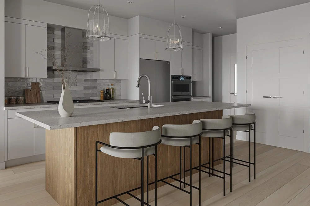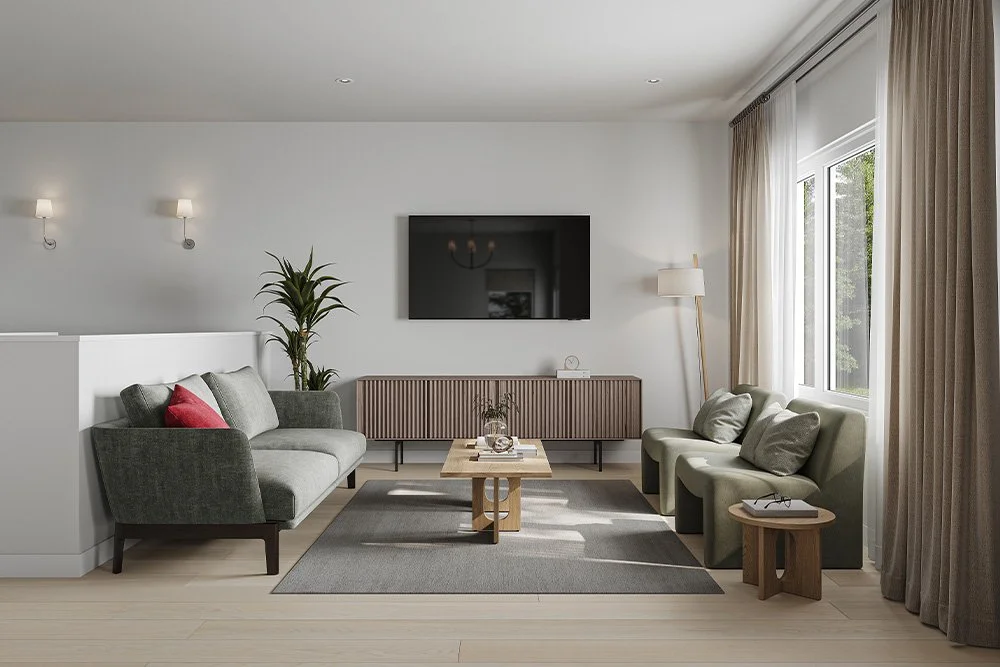 Discover this thoughtfully designed walk-up style duplex featuring 9’ ceilings and a double attached garage. The main floor offers a spacious open-concept layout, complete with a primary suite, convenient laundry, and a versatile flex room—perfect for a home office or guest space. Step out onto the partially covered rear deck and enjoy your own private backyard. The partially developed lower level includes two additional bedrooms and a full bathroom, providing extra comfort and privacy. Styled in our elegant Cove interior colour palette, this home also includes full landscaping, a chain link fence between attached units and has 471 sq.ft. of additional undeveloped space for future possibilities. Best of all—no HOA or strata fees!